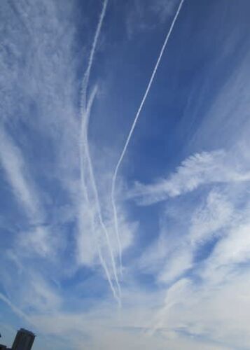 こないだ綺麗な飛行機雲を発見した。 同じような軌道で3本ある。 飛行機なのか?自衛隊なのか? 飛行機雲ができると天気が悪くなるという。 だけど、この後崩れるとまでは行かなかった。 それにしても青空はいいよね